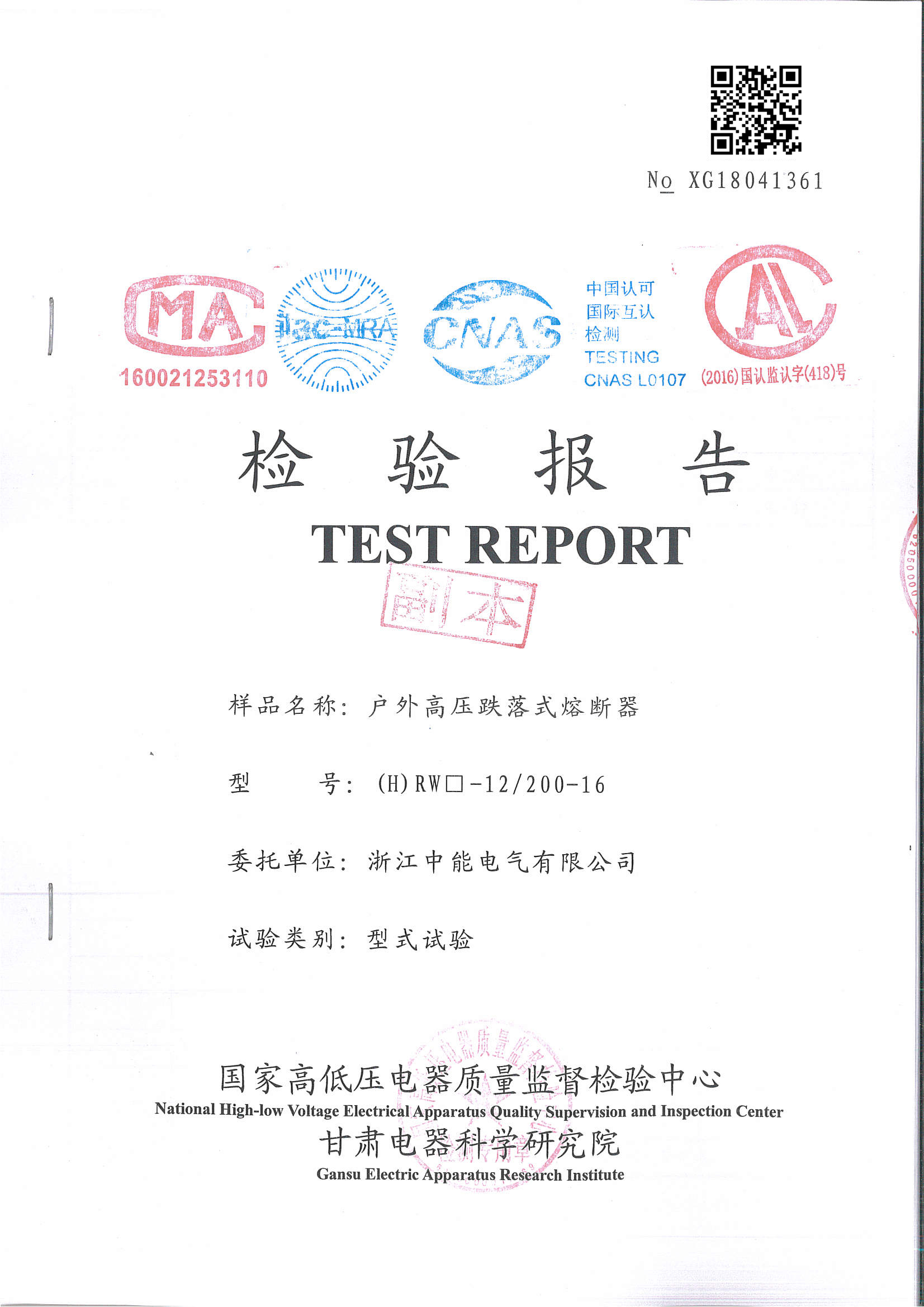 委托单位:浙江中能电气有限公司